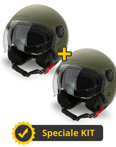 Descrizione prodotto Kit Coppia Rapid II Verde Militare Opaco – 2 Caschi jet Befast doppia visiera