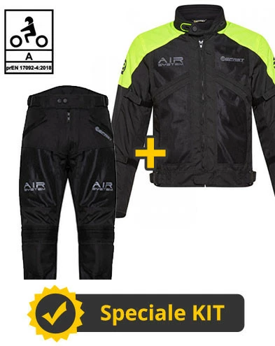 Descrizione prodotto Kit Freezer Man CE Nero Giallo – Giacca moto Befast estiva + Pantaloni moto Befast estivi